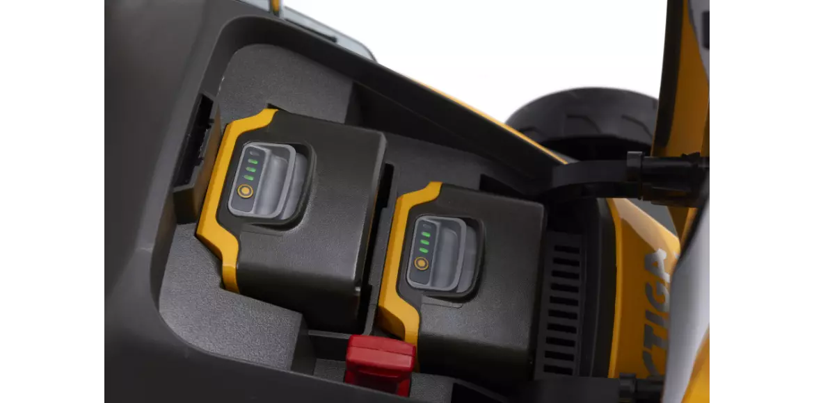 - W zestawie Akumulator 2 x 4 Ah, Podwójna ładowarka
