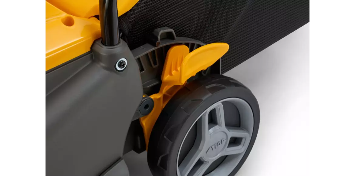Wysokość koszenia można szybko ustawić w jednej z pięciu pozycji (w zakresie od 25 mm do 75 mm) za pomocą dźwigni na kole.