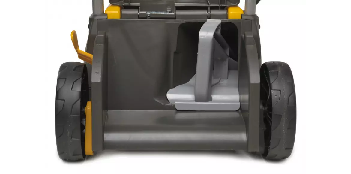 Ta kosiarka oferuje funkcję mulczowania. Wystarczy wyjąć kosz i włożyć wtyczkę do mulczowania.