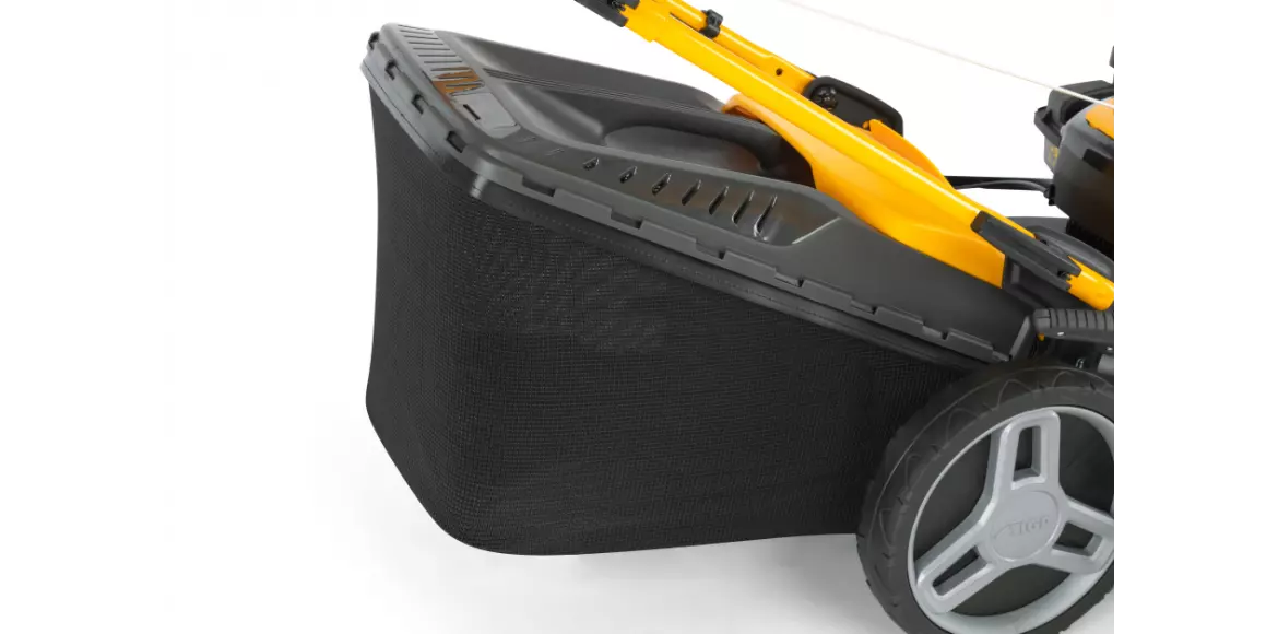 Kosz umożliwia zebranie do 60 L skoszonego materiału. Wskaźnik zapełnienia na górnej części informuje nas kiedy kosz jest zapełniony.