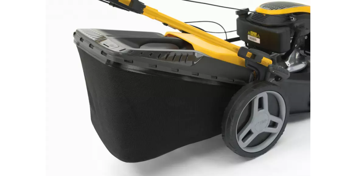 Kosz umożliwia zebranie do 60 L skoszonego materiału. Wskaźnik zapełnienia na górnej części informuje nas kiedy kosz jest zapełniony.