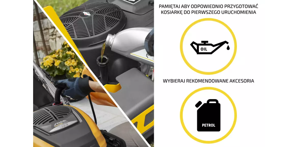 Pamiętaj o rekomendowanych akcesoriach potrzebnych do pierwszego uruchomienia kosiarki