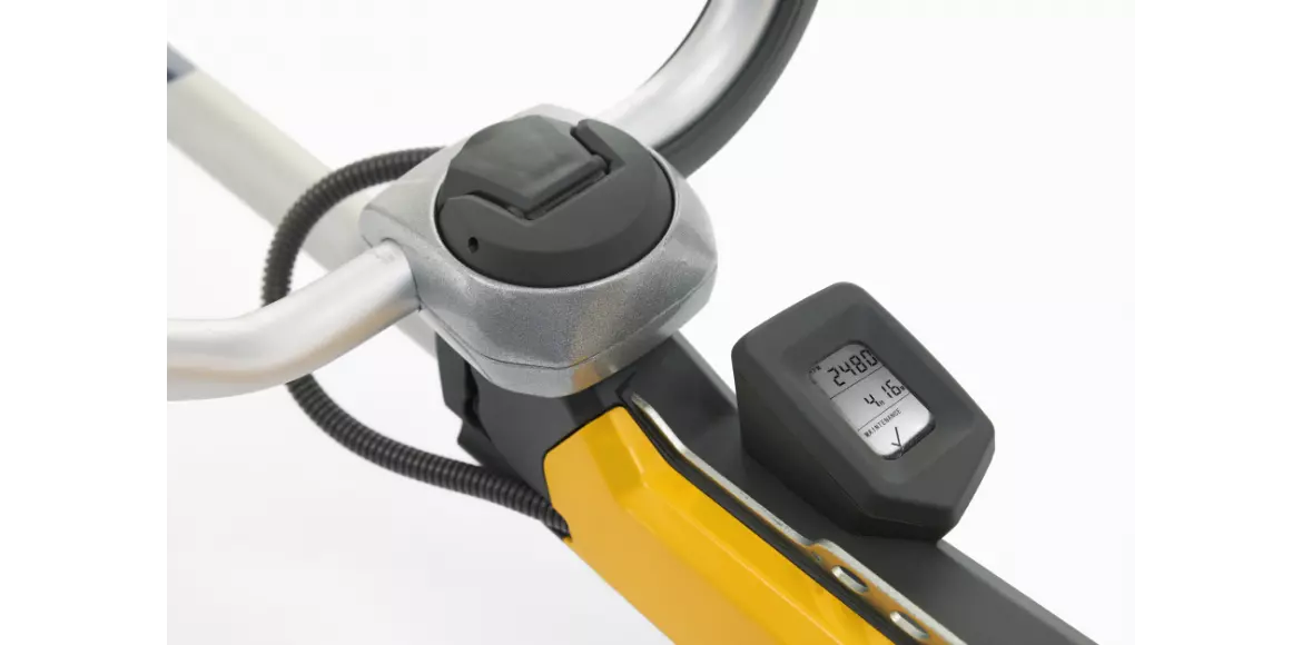 Nowy wyświetlacz cyfrowy, umieszczony na kierownicy jest zawsze widoczny podczas pracy. Na bieżąco przekazuje wszystkie przydatne informacje o pracy i wysyła powiadomienia o potrzebie wykonania konserwacji, aby zachować wydajność i żywotność maszyny jak najdłużej.
