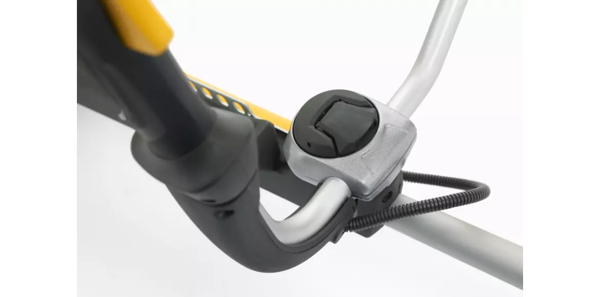 STIGA BC 760 B to wydajna kosa spalinowa, wyposażona w dwusuwowy silnik benzynowy o pojemności 52,8 cm3 z szerokością koszenia 45 cm. Jest idealnym partnerem do stawienia czoła dziko rosnącej, wysokiej trawie. Obsługa jest więc szybka i prosta, pobór energii i zużycie są mniejsze, a urządzenie działa dłużej. Wzmocniony w stylu podobnym do stosowanego w leśnictwie, dobrze wyważony silnik cechuje się niższym poziomem drgań, co pozwala na komfortową pracę. Kierownica typu dupleks gwarantuje komfort obsługi kosy i pełną kontrolę w każdych warunkach. Nowy wyświetlacz cyfrowy, umieszczony na uchwycie, dostarcza wszystkie potrzebne informacje oraz alarmy dotyczące pracy i konserwacji, aby zachować jakość i wydajność maszyny jak najdłużej. Kosa jest dostarczana z potrójnym, metalowym ostrzem TRI ARC i najnowszej generacji głowicą dwużyłkową Tap&Go Easy Load, która umożliwia szybkie zwolnienie żyłki po przyciśnięciu głowicy do podłoża.