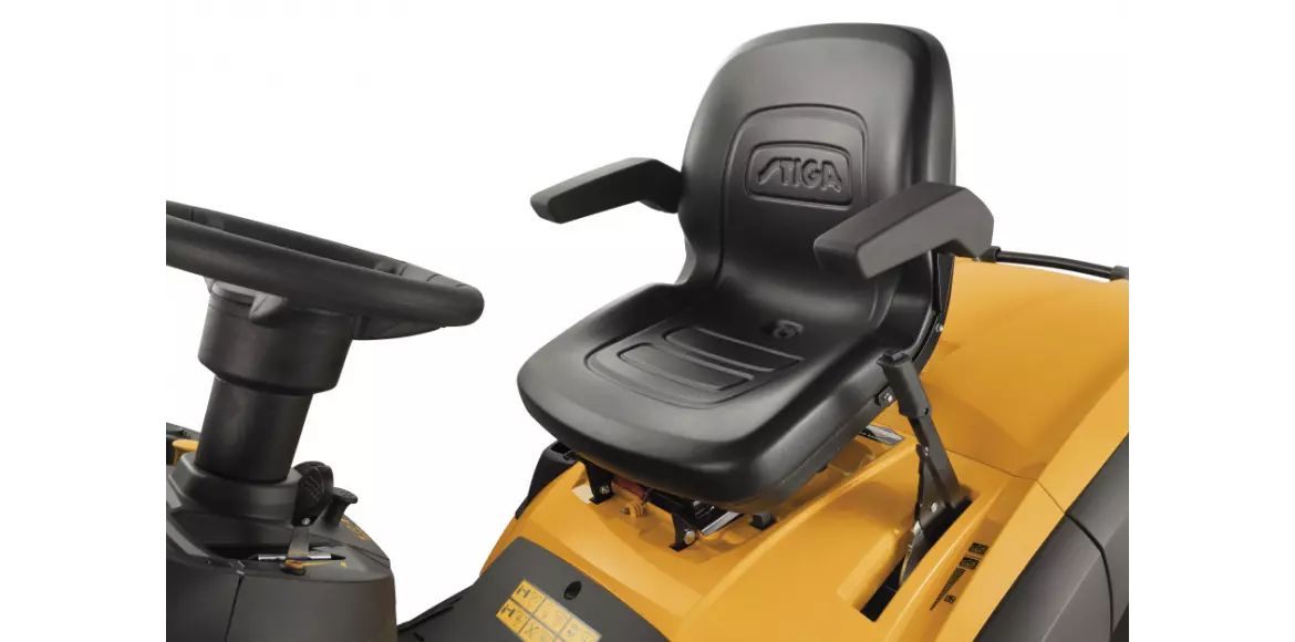 Dzięki miękkiej rękojeści kierownicy STIGA Premium, ergonomicznemu siedzeniu Comfort Plus z podłokietnikami i funkcji tempomatu, będziesz cieszyć się doskonałym komfortem jako kierowca. Komfort jazdy jest niezbędny dla każdego, kto regularnie wykonuje czasochłonną pracę koszenia.