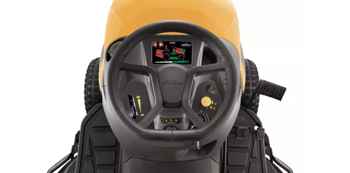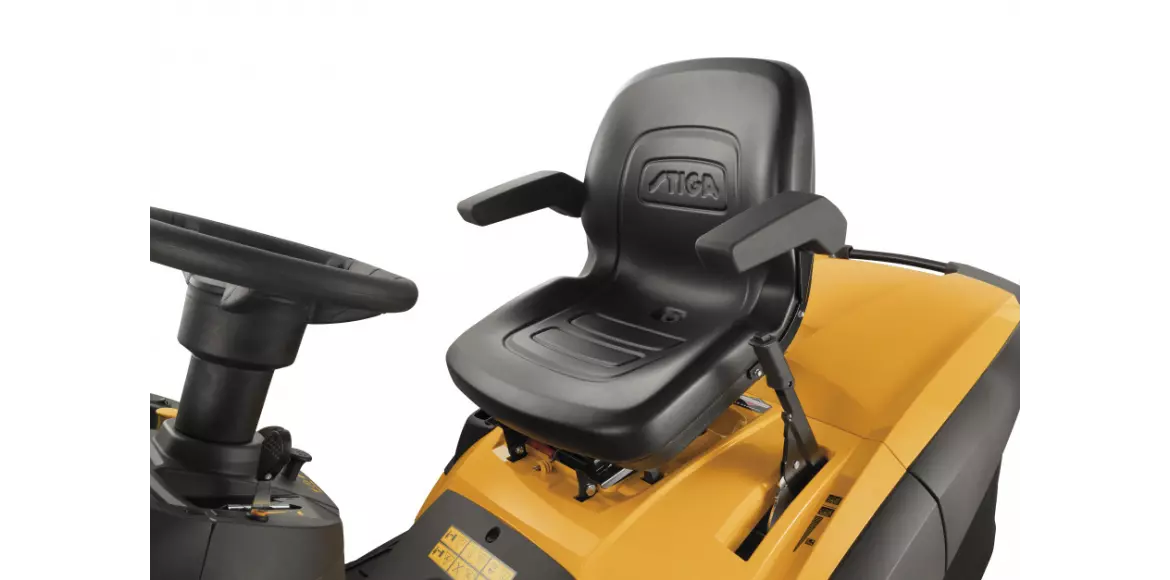 Dzięki miękkiej powierzchni kierownicy STIGA Premium, ergonomicznemu siedzeniu Comfort Plus z podłokietnikami i funkcji tempomatu będziesz cieszyć się doskonałym komfortem jako kierowca. Wygoda niezbędny dla każdego, kto regularnie wykonuje czasochłonne prace koszenia.