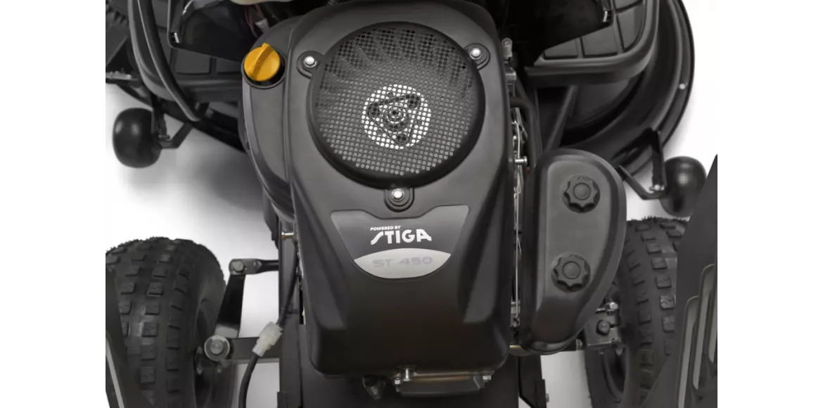 Kosiarka jest wyposażona w 1 cylindrowy silnik STIGA o pojemności 432cm³.