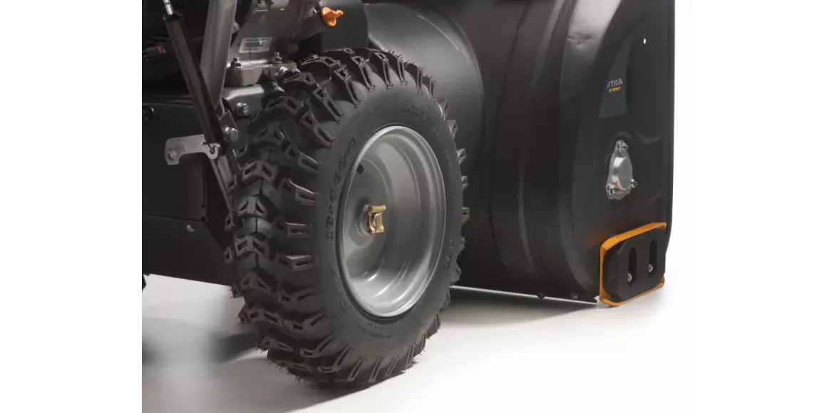 STIGA ST 4262 P to niezawodna, dwustopniowa odśnieżarka, która radzi sobie ze śniegiem o głębokości do 50 cm na średnich i dużych obszarach, takich jak ścieżki, chodniki i parkingi. Dzięki silnikowi STIGA o pojemności 212 cm³ i wirnikowi o szerokości 62 cm, urządzenie to uprzątnie nawet zbity śnieg, który wyrzuca kominem sterowanym za pomocą zwykłej korby. Wszystkie dźwignie (do sterowania kominem wyrzutu, deflektorem i prędkością) są dogodnie usytuowane na panelu sterowania. 14" opony Snow Hog zapewniają dużą przyczepność, a dwie odwracane płozy (z metalu/polietylenu) pozwalają na pracę na każdym rodzaju powierzchni i nie powodują uszkodzeń tych delikatniejszych. Prędkość modelu ST 4262 P można regulować przy użyciu 6 biegów do przodu i 2 wstecznych.