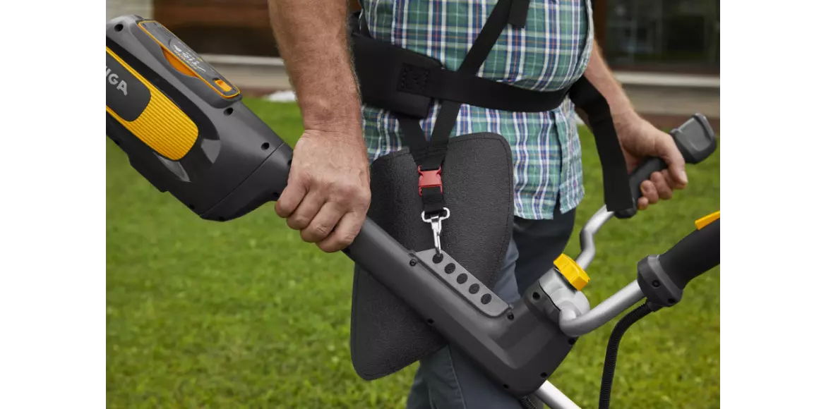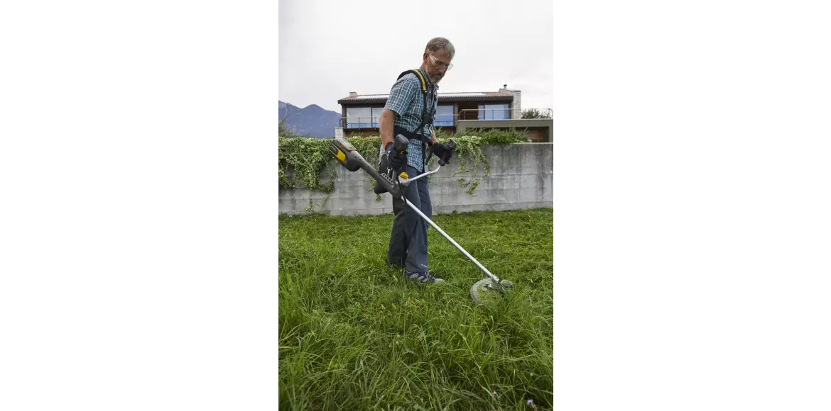 BC 700e B to pierwsza kosa z podwójną kierownicą z serii urządzeń akumulatorowych STIGA. Akumulator 48 V 4 Ah (sprzedawany osobno) zapewnia do około 66 minut ciągłego cięcia na jednym ładowaniu, podczas gdy jego lekka, solidna konstrukcja i inteligentne, ergonomiczne funkcje z łatwością sprostają najtrudniejszym zadaniom. Nierówny teren, strome zbocze czy głęboki rów? Dzięki pięciu pozycjom zaczepu szelek ta kosa zapewnia równowagę i kontrolę w każdym miejscu pracy. Aby zwiększyć wytrzymałość, zbudowana jest z rurki ze stopu lekkiego, solidnie odpornego na zginanie i wibracje. Użyj panelu sterowania na uchwycie z wyświetlaczem LED i spustu, aby ustawić prędkość do 6000 ściegów / min. Dwuliniowa głowica tnąca Bump & Work zaczyna pracować. Aby sprostać trudniejszym wyzwaniom podczas cięcia naciśnij przycisk, a ostrze 4T włącza się, zapewniając 6500 obr./min. Dzięki szerokości cięcia 38 cm i wysokiemu momentowi obrotowemu ta kosa z łatwością przecina grubą, wysoką, a nawet mokrą trawę. Akumulator i ładowarka do nabycia osobno.