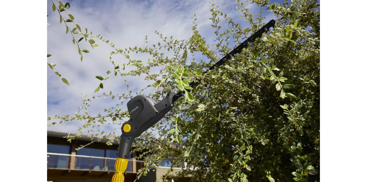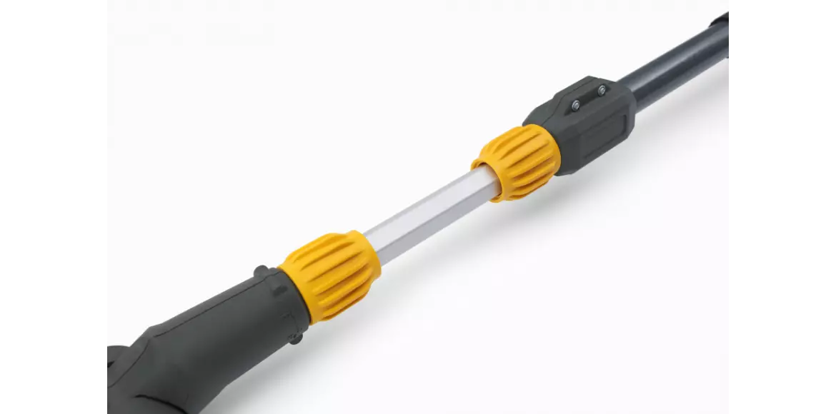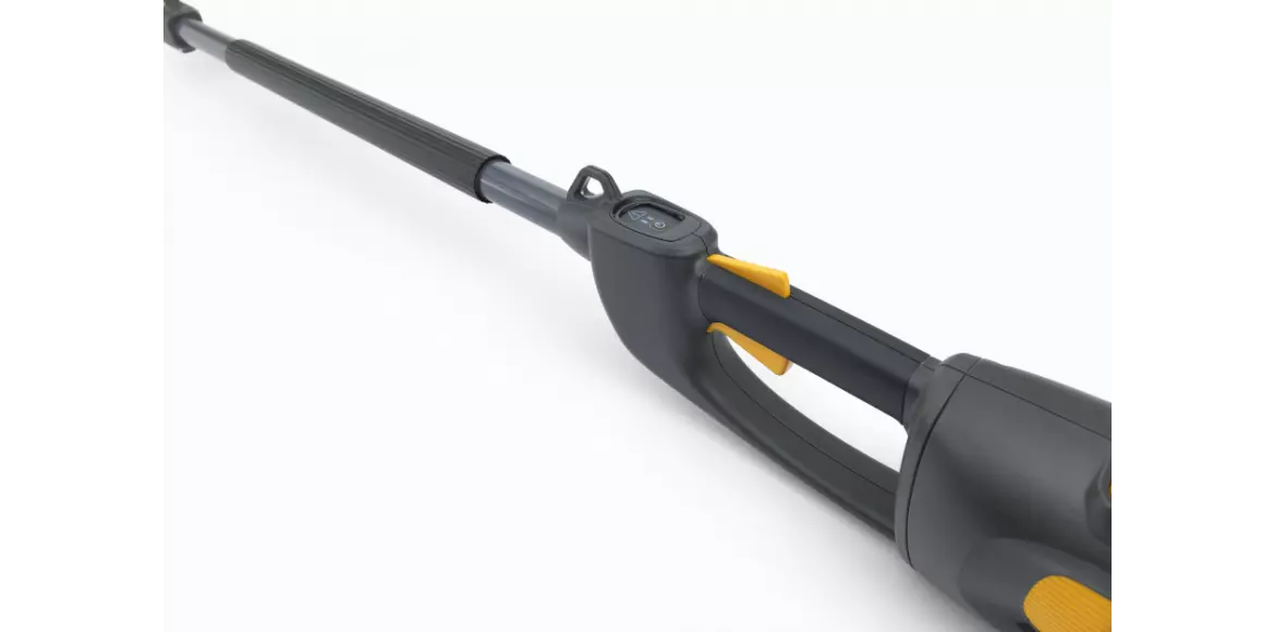 - Bezprzewodowy sekator na wysięgniku zaprojektowany do wygodnego przycinania i cięcia w wyższych partiach.