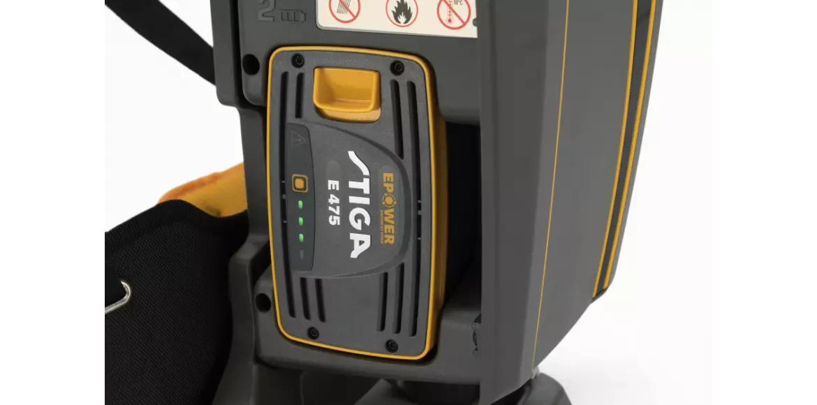 Do narzędzi ręcznych serii 900 zalecane są dwa akumulatory ePower 475 48 V 7,5 Ah. Ale każde natężenie prądu akumulatora E-Power pasuje do uprzęży, w tym serii 500 i 700 firmy STIGA.