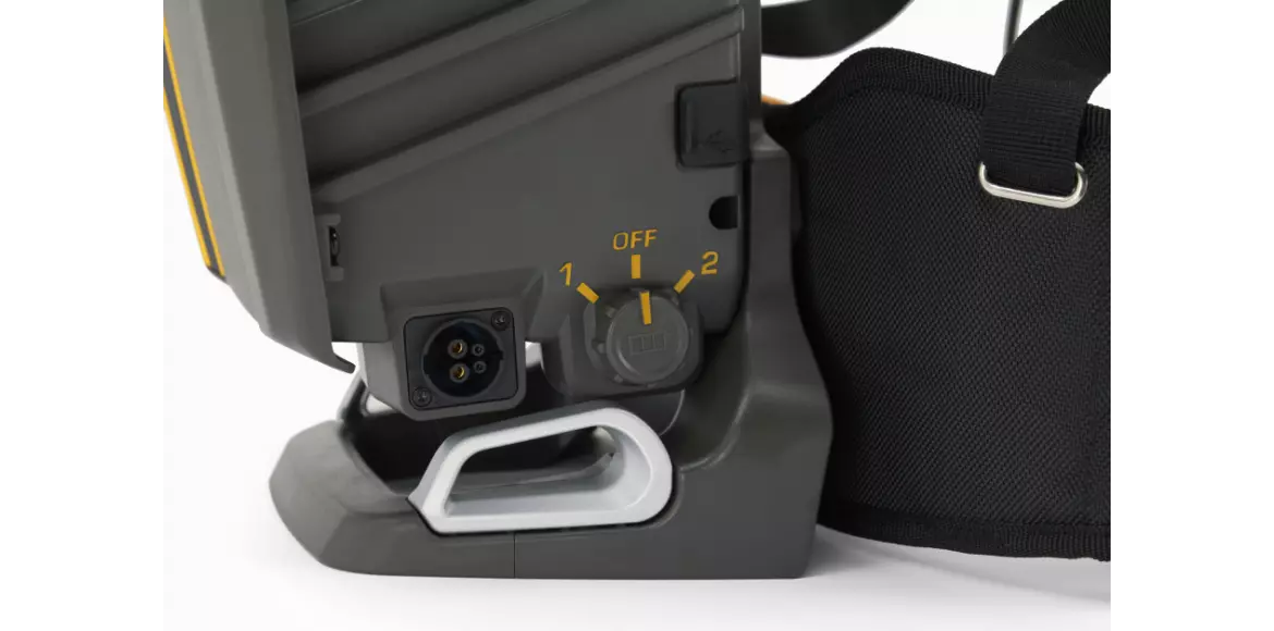 Gdy jeden akumulator się rozładuje, wystarczy wybrać drugi, obracając złącze przełącznika na plecaku.